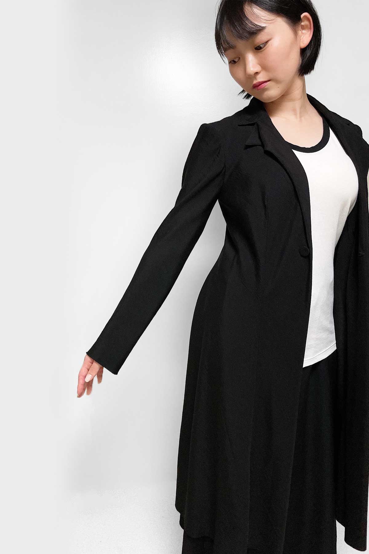 初めてヨウジヤマモトさんの服を着て、小柄・低身長でも身体にフィットする服があることに驚きました。さらに、腕がスリムに見えたり、スリットから脚が見えることで細さをアピールできたりと、アレンジ次第で自分がアピールしたい部分を魅せることができるのがとても魅力的だと感じました。